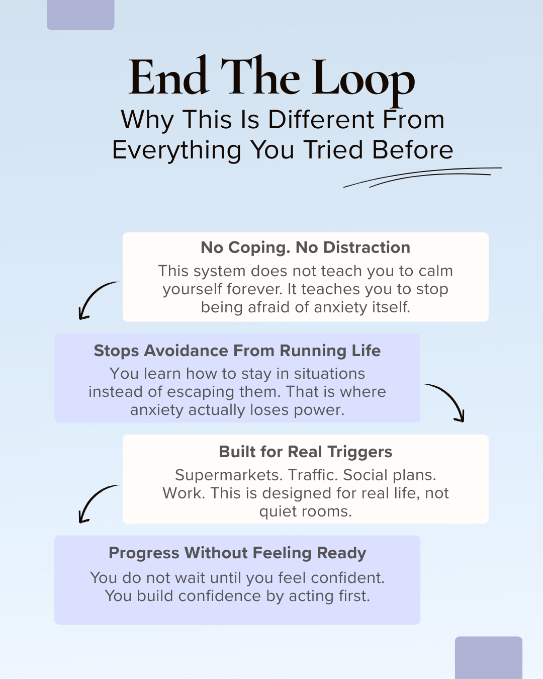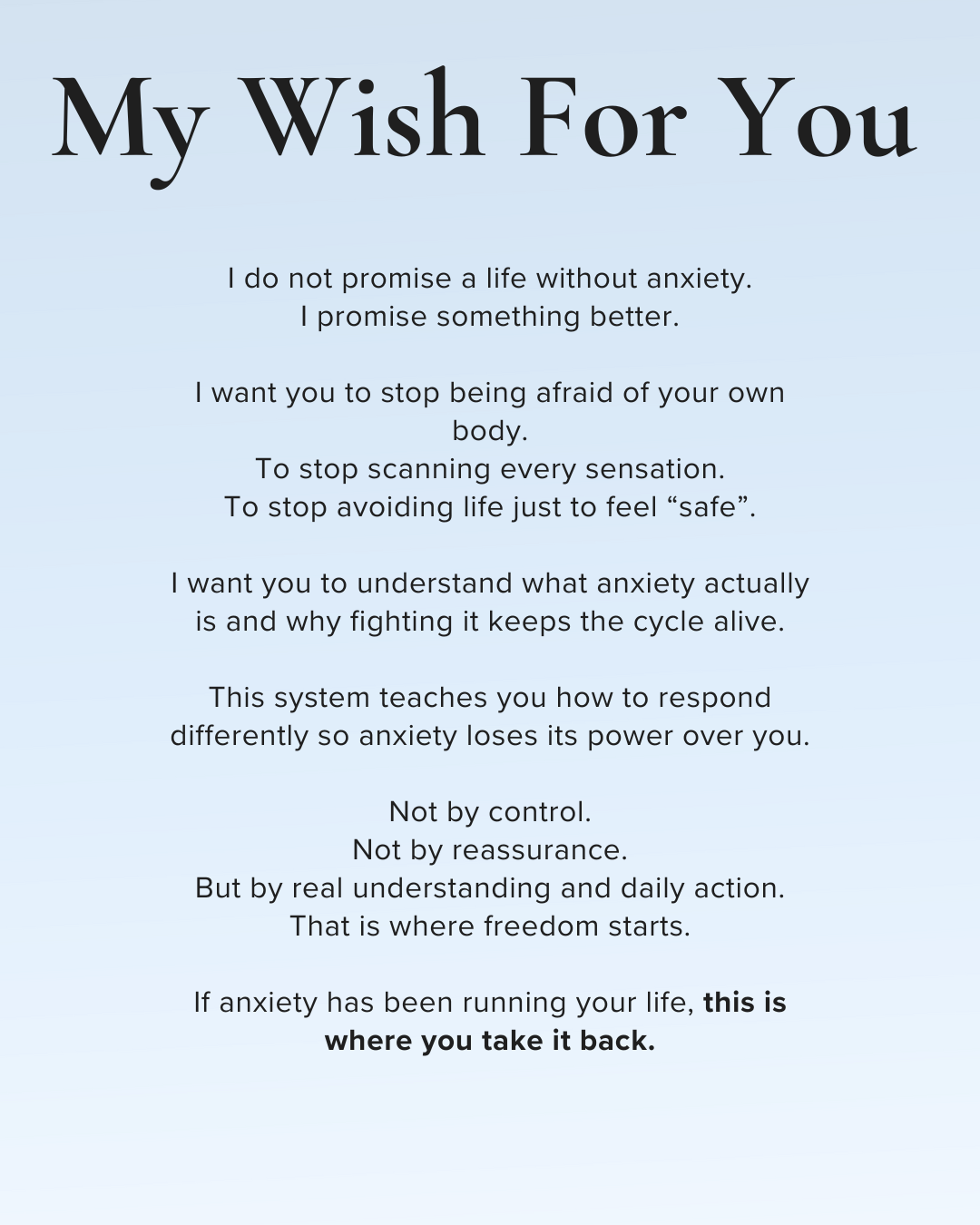 The goal is not managing anxiety forever, but stopping the fear of it completely.